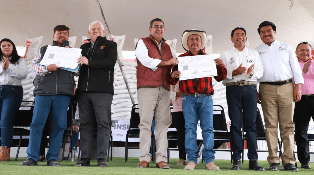 – Para fortalecer las cadenas de maíz, frijol y hortalizas, así como garantizar el bienestar de las y los productores poblanos y que tengan un mejor futuro, los gobiernos de México y de Puebla iniciaron en este municipio con la Entrega de Insumos del Programa de Fertilizante para el Bienestar 2024.