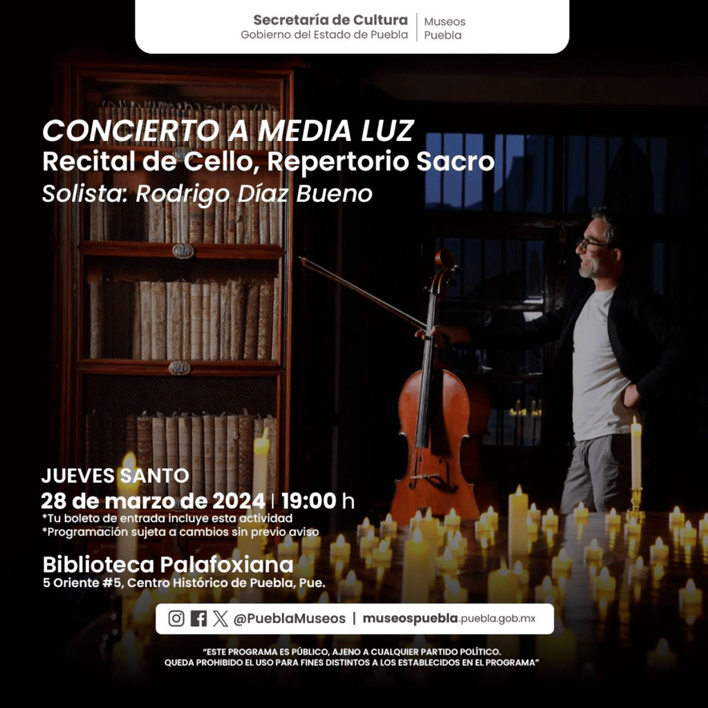CONCIERTO A MEDIA LUZ RECITAL DE CELLO, REPERTORIO SACRO SOLISTA: RODRIGO DÍAZ BUENO