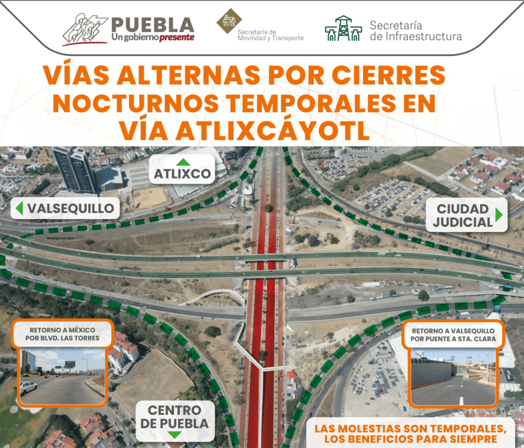 «CIERRES VIALES» VÍAS ALTERNAS POR CIERRES NOCTURNOS TEMPORALES EN VÍA ATLIXCÁYOTL