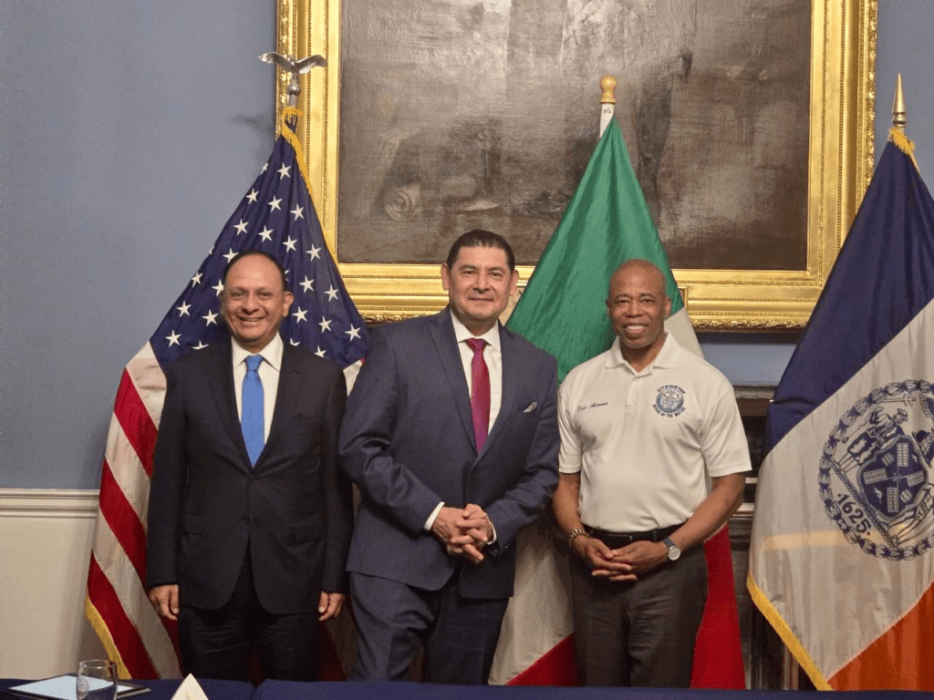 En reunión con Eric Adams, Alcalde de Nueva York se habló de un convenio de colaboración para la capacitación de las fuerzas policiales poblanas en materia de inteligencia y reacción para reforzar el tema de seguridad; con el sustento de la directriz del Plan Nacional que la Dra Claudia Sheinbaum tiene para México.