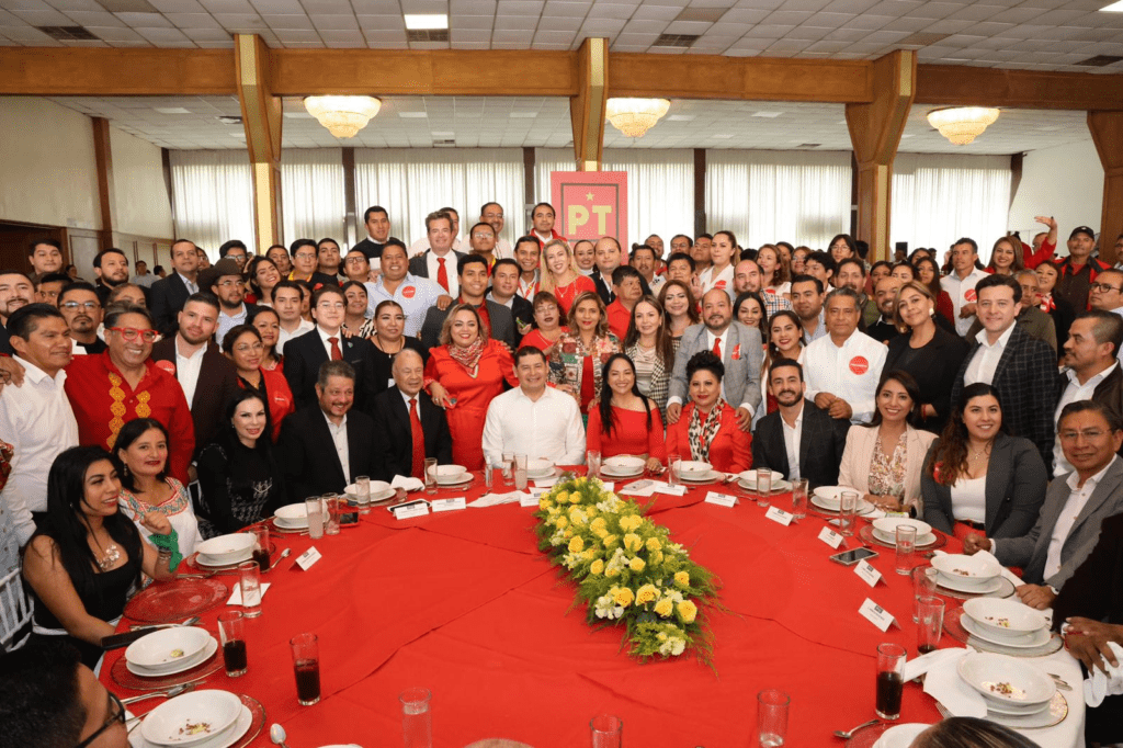Al evento acompañaron al gobernador electo de Puebla, y al dirigente nacional del PT, Ernesto Villareal Cantú, coordinador político nacional; Nora Merino Escamilla, diputada electa; José Antonio López Ruiz, diputado federal; Esther Martínez Romano, diputada local electa; Angélica Alvarado, diputada local electa; Xel Arianna Hernández García, diputada local electa; José Luis Figueroa Cortes, diputado local electo y Mónica Silva, síndica electa en el municipio de Puebla.