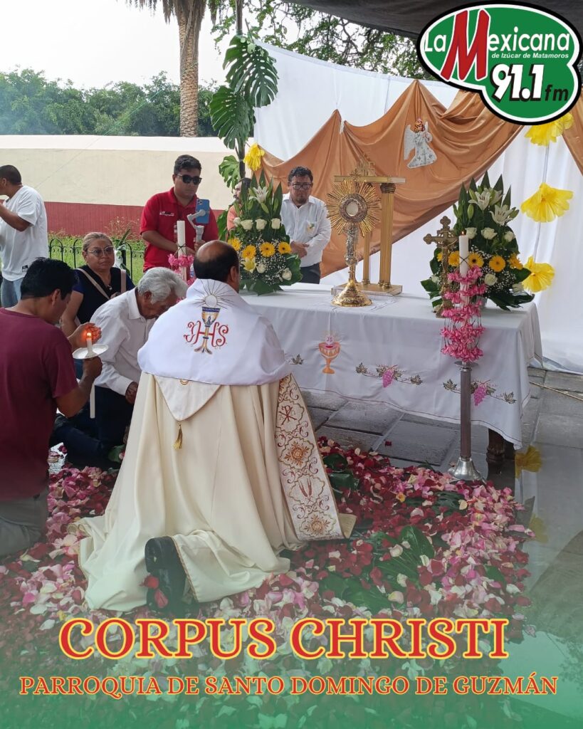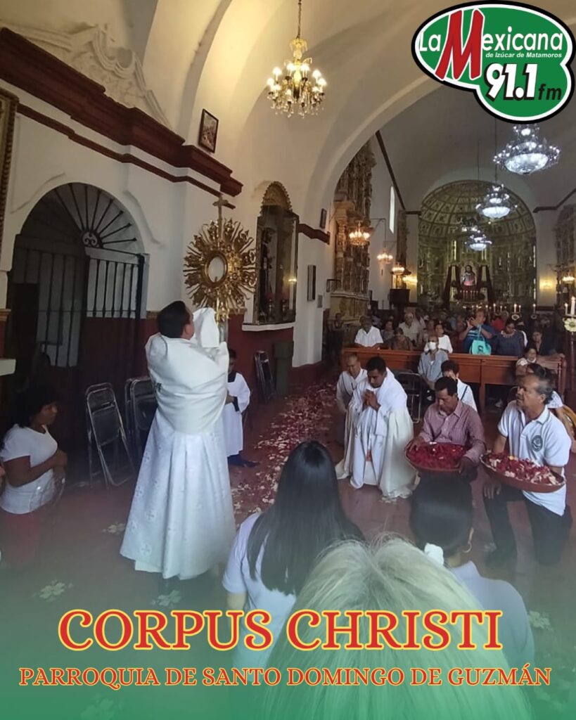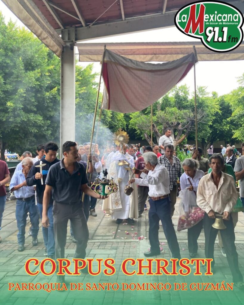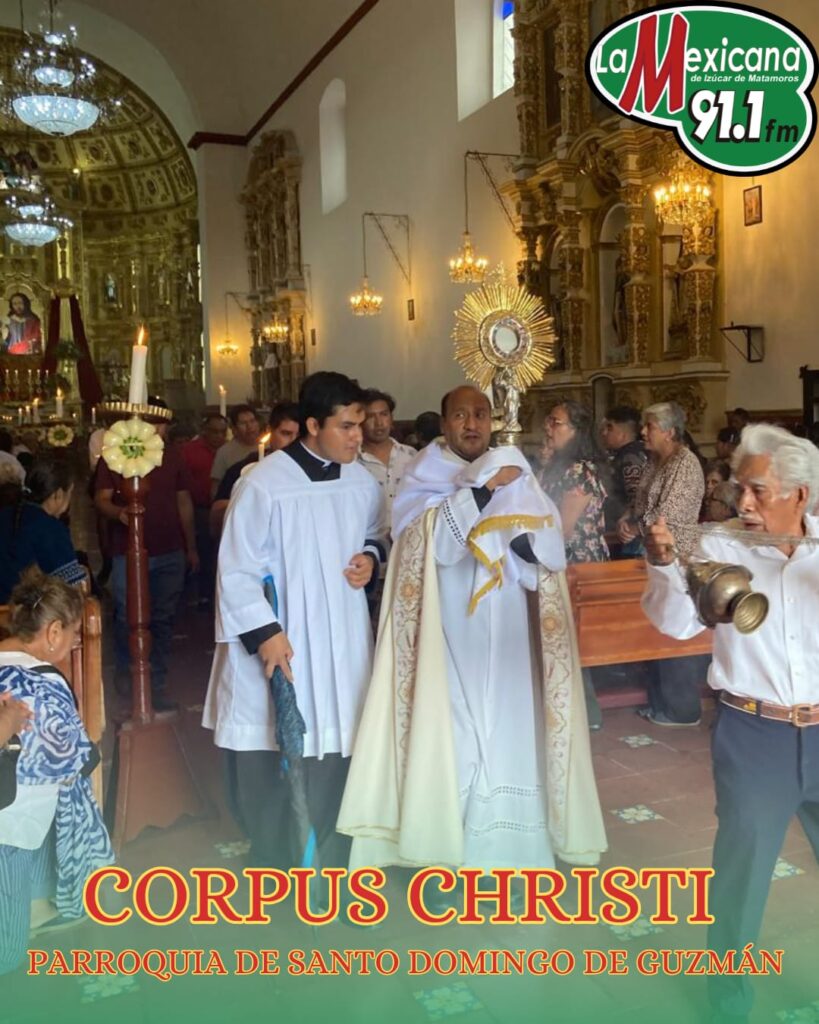 La misa principal se celebró al mediodía, y como cada año, al finalizar se realizó la tradicional procesión del Santísimo Sacramento por el atrio. Debido a la lluvia, este año se hicieron dos procesiones: una dentro del templo, encabezada por los sacerdotes José Feliciano Salas González (vicario parroquial) y Manuel Gregorio Anaya Balbuena (sacerdote oriundo de esta parroquia), y otra en el exterior, dirigida por el párroco Sr. Canónigo José Santiago Álvarez Cabrera.