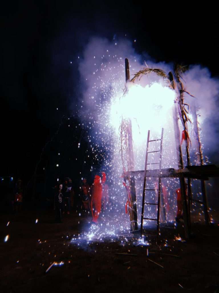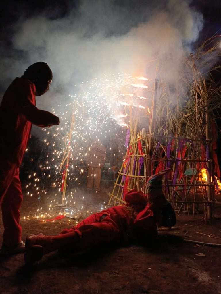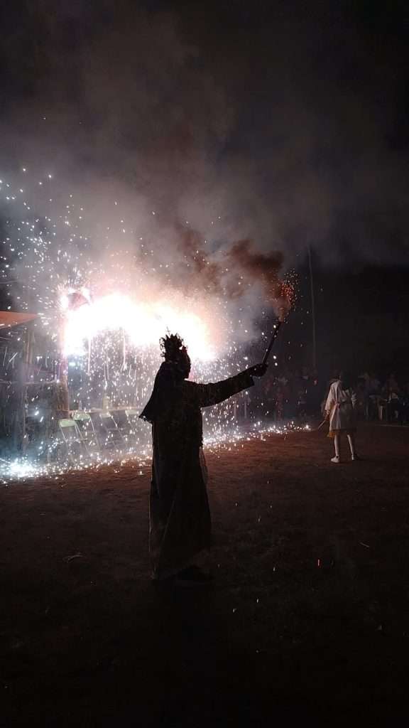 A lo largo de la madrugada, mientras algunos asistentes se retiran y otros resisten el frío junto a fogatas, los danzantes continúan sin interrupción. La exigencia física y mental es evidente: memorizar extensos diálogos, ejecutar coreografías y mantener el ritmo durante más de diez horas requiere disciplina y compromiso.